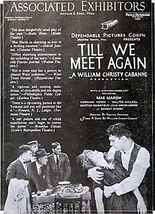 Till We Meet Again is a 1922 American silent melodrama film directed by Christy Cabanne and starring Julia Swayne Gordon, Mae Marsh, and J. Barney Sherry. It was released on October 15, 1922.[2]