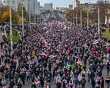 - 1 2 "Belarus protesters face crackdown, as protest draws tens of thousands". Deutsche Welle. 2020-11-01. Retrieved 2020-11-02.