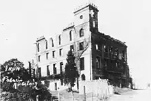 In recognition of his merits[98] the Carlist artillery corps asked Carlos VII to nominate Olazábal honorary colonel;[99] contemporary scholar claims he delivered more than 50% of all artillery pieces used by the Carlist troops.[100] Exact scale of his engagement is unclear; some authors maintain that Carlists transported arms also from America[101] with English intelligence reporting a wide international delivery network.[102] The claimant acknowledged his role by conferring upon Olazábal condado de Arbeláiz.[103] His engagement in actual combat was rather symbolic.[104] He is remembered for his stance during the siege of Irun, when Olazábal directed artillery fire from the guns he procured at his family palace at Plaza de San Juan (San Juan Square), held by the Liberal troops.[105]