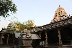 Sambandar, an 8th-century Tamil Shaiva saint poet, venerated Uchinathar in ten verses in Tevaram, compiled as the First Tirumurai.[5] As the temple is revered in Tevaram, it is classified as Paadal Petra Sthalam, one of the 276 temples that find mention in the Shaiva canon. The temple is counted as the fourth in the series of the temples on the northern bank of river Kaveri.[1] The temple is also called Bhairava temple. It is believed to the place where sages Agastya and Valmiki are believed to have obtained grace. The image of goddess Sivakami Amman is sported with her friends Vijaya and Saraswati.[3]