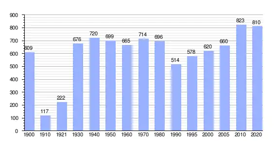 In 2020, it registered a population of 810 people, which corresponds to 4.28 % of the municipal population.[4] Of which 386 are men and 424 are women.[4] It has 1215 private inhabited homes.[4]