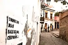 The music video for "Todos los días sale el sol" was directed by Egoi Suso.[11] It was shot in Tarragona, Spain on 20 May 2011[12] and was released on 23 June 2011. In the video, frontman Uri Giné is shown singing the song as he walks down the street and meets his bandmates. He also passes through two bars, a hair salon and a bar's kitchen, and he finally arrives to a small square where he sings along with the whole band and a crowd of fans.[11] Uri Giné wanted the music video to end in this square because he used to play his songs there very often before forming the band. Actually, another song from the same album, called "La plaça de la alegría", is about this square and some stories that took place there. The real name of the square is Plaça Sedassos and it is located in the old town of Tarragona, Spain.[13][14]