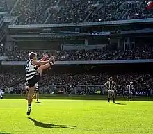 - ↑ Lienert, Sam (3 August 2012). "Geelong forward Tom Hawkins conjures something special to break Hawthorn hearts in classic MCG clash". Fox Sports Australia. News Corp Australia. Retrieved 14 October 2016.