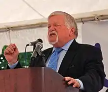 After leaving office, he took a position with Tonkon Torp LLP, in the law firm’s public affairs office as a senior policy adviser.[32] Hughes announced in December 2009 that he would run for the office of president of the Metro Council in the 2010 election.[33] He finished first in a three-way race in the primary, garnering 37 percent of the vote after endorsements by most of the area's newspapers and chambers of commerce.[34] Hughes faced Bob Stacey in the November 2010 general election and won by approximately 1,000 votes out of 400,000 votes cast.[35] Hughes was sworn into office on January 4, 2011.[36][37]