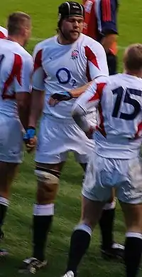 He earned a place in the England Saxons squad whilst still playing in National Division One and was then rewarded with a place on the England Summer tour to North America in 2001.[15] After appearing in the midweek sides, he won his first senior cap as a replacement for Steve Borthwick in the final 10 minutes of England's victory over the United States in San Francisco on 16 June 2001.[16]