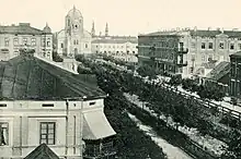 Tomaszów Mazowiecki was formed in 1788 in the Crown of the Kingdom of Poland by owner these lands – Tomasz Ostrowski based on local supply of the iron ore. Ostrowski invited the first miners and metallurgists from the Old-Polish Industrial Region.[8][9] The settlement fell into the Prussian Partition in 1793 during the Second Partition of Poland. In 1807 it was regained by Poles and included within the short-lived Duchy of Warsaw, and since 1815 it was located in the Russian Partition. The metal industry was expanded around 1820. Tomaszów received city rights in 1830 during the Polish November Uprising against the Russian Empire. The first weavers came to Tomaszów from Zgorzelec. The first Lutheran church was established in 1823.[10] In 1825, Antoni Ostrowski transferred from the village of Tobiasze to Tomaszów a Catholic parish with the church of St. Wenceslas – Duke of Bohemia, which was located at Wieczność St., in the area of the first Catholic cemetery (nowadays Słowackiego St).[11][12] In 1831 Qahal was founded.[13] During the January Uprising, on July 12 and September 1, 1863, clashes between Polish insurgents and Russian soldiers took place.[14] From 1867, it was administratively located in the Piotrków Governorate.