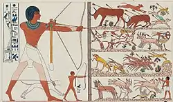 ![]() Hunting in the desert, scene from tomb of Neferhotep | |