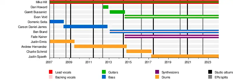 Past members | Dan Howard, Carson Daniel James, Justin Ennis, Dominic Seita, Andrew Hernandez II, Fade Kainer, Ben Brand, Evan Void |