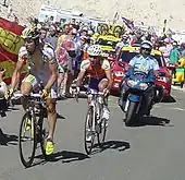 In 2009, Martin won time trials in the Critérium International,[17] and the Bayern Rundfahrt.[18] He also featured strongly in week-long stage races, winning the mountain classifications at Paris–Nice,[19] and the Tour de Suisse, finishing second overall and winning a stage in the latter.[20][21] Martin also made an impact at the Tour de France, wearing the white jersey as leader of the young rider classification for twelve days (between stages 3 and 14),[22] and winning the combativity award after finishing second on Stage 20 at the top of Mont Ventoux.[23] He took the bronze medal in the time trial at the UCI Road World Championships at the end of the season.[23]