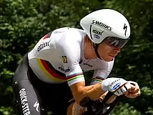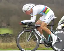 Tony Hans-Joachim Martin (born 23 April 1985) is a German former professional road bicycle racer.[8] Martin was known as a time trial specialist, and is a four-time world champion in the discipline – having won the title in 2011, 2012, 2013 and 2016 – which is joint-most with Fabian Cancellara.[9] He also won a silver medal at the 2012 Summer Olympics in London, finishing runner-up to Bradley Wiggins in the event. Martin was also part of four world championship-winning team time trial squads, with Omega Pharma–Quick-Step/Etixx–Quick-Step, in 2012, 2013 and 2016, and with Germany in the mixed relay time-trial in 2021.[8]