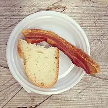 A torrezno with a slice of bread