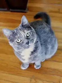 One study found that tortoiseshell owners frequently believe their cats have increased attitude ("tortitude"),[26] affectionately described as "the divas of the cat world" because they typically like things done their way and have a quick temper when crossed.[27] There is, however, little existing scientific evidence on the matter.[28] One study found that there was not a relationship between coat color and tameness.[29] However, a 2015 study from the University of California, Davis School of Veterinary Medicine surveying more than 1,200 cat guardians established links between a tortoiseshell coat pattern and a cat's inclination towards hissing, biting, chasing, and slapping/scratching their human companions,[30] while a 2016 study showed an association with increased aggression and prey interest.[31] According to celebrity cat expert Jackson Galaxy, tortoiseshell cats tend to have much more distinct personalities and are more sensitive to environmental stimuli.[32] Based on the varying study results, assumptions cannot be made between cat coat color and personality.[33] However, with some animals, such as domestic horses, silver foxes, deer mice, and rats, there are associations between personality and coat color and more research is needed to see if there is such an association in cats.[33]