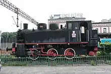 Steam engine TKh49-5564 is plinthed outside the north entrance to the station.