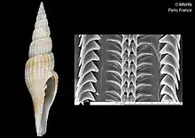 Shell and radula of Tosapusia evelyniana (specimen at MNHN, Paris) | |