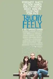 Touchy Feely is a 2013 film directed by Lynn Shelton and stars Rosemarie DeWitt as a massage therapist who develops a phobia to touching skin. Other cast members include Allison Janney, Ron Livingston, Scoot McNairy, Elliot Page and Josh Pais. The film premiered at the 2013 Sundance Film Festival where it was nominated for the U.S. Grand Jury Prize: Dramatic,[2] and was released on September 6, 2013. It gained a mixed critical reception, and grossed over $36,000 in the United States.
