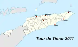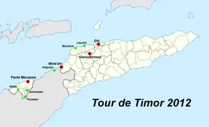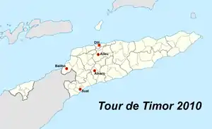 - ↑ Tour de Timor Timing Official. "Overall Tour de Timor course profile with photos". Retrieved 2009-09-08.
