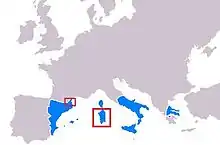 In Sardinia, Tourbat is known as Torbato and is grown around Alghero in the province of Sassari on the northwestern reaches of the island.[4] In France, it is most widely planted in the Appellation d'Origine Contrôlée AOC region of the Côtes du Roussillon where the variety is known as Malvoisie du Roussillon.[2]