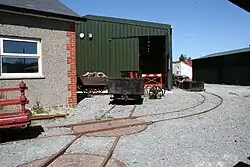 In keeping with other such tram roads the line was probably worked by gravity, manually and by horses.[11] The use of horses is also indicated by the horse trough next to the line near Fencedyke.[7] The use of steam locomotives is not consistent with the tram road's infrastructure as indicated on the OS maps, with right angle bends, gaps at road junctions, etc.,[7] although the short section of line to Dreghorn was different in this respect, and a locomotive-style run-round loop is suggestive of some form of steam engine being in use here.[1]