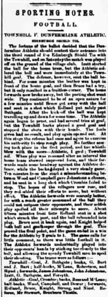 - ↑ "Townhill v Dunfermline (Scratch team)". Dunfermline Saturday Press: 3. 6 June 1885.