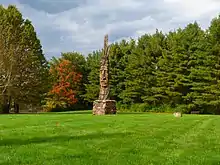The Trail of the Whispering Giants is a collection of sculptures by Hungarian-born[1] artist Peter Wolf Toth.[2][3] The sculptures range in height from 20 to 40 feet (6.1 to 12.2 m), and are between 8 and 10 feet (2.4 and 3.0 m) in diameter.[4] In 2009, there were 74 Whispering Giants,[3] with at least one in each of the 50 U.S. states, as well as in Ontario and Manitoba, Canada,[4] and one in Hungary.[5] One in Oregon was removed in 2017 after irreparable windstorm damage,[6] reducing the total to 73. In 1988, Toth completed his goal of placing at least one statue in each of the 50 states, by carving one in Hawaii, and in 2008, he created his first Whispering Giant in Europe, Stephen I of Hungary in Délegyháza,[7] Hungary along the Danube River.[5]