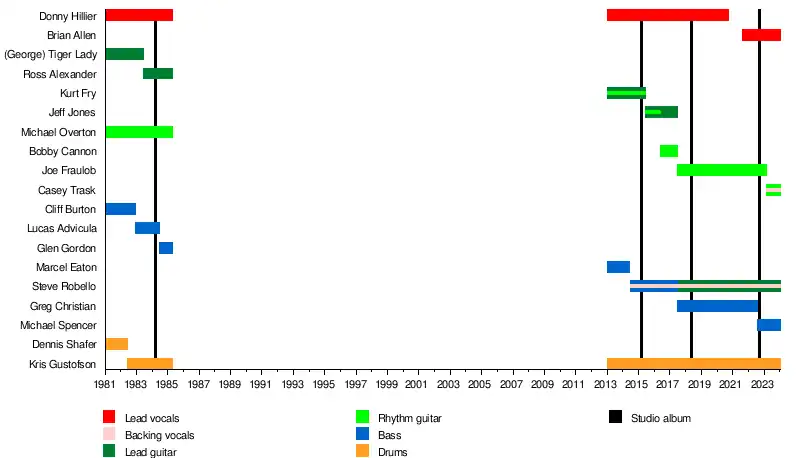 - Kris Gustofson – drums (1982–1985, 2013–present)