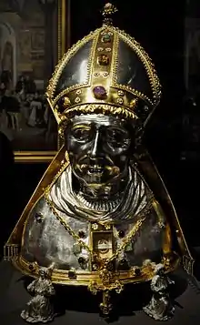 The Treasury of St. Vitus Cathedral (Czech: Svatovítský poklad) is a collection of ecclesiastical treasures of the Prague Cathedral and is in the property of Prague Cathedral Chapter.[1] It is the largest church treasury in the Czech Republic and one of the most extensive in Europe.[2] The Treasure contains more than 400 items, 139 from them have been displayed since 2012 in a new exhibition in the Chapel of the Holy Rood in Prague Castle.[3]