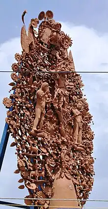A Tree of Life (Spanish: Árbol de la vida) is a type of Mexican pottery sculpture traditional in central Mexico, especially in the municipality of State of Mexico. Originally the sculptures depicted the Biblical story of creation, as an aid for teaching it to natives in the early colonial period. The fashioning of the trees in a terracotta sculpture began in Izúcar de Matamoros, Puebla but today the craft is most closely identified with Metepec.[1] Traditionally, these sculptures are supposed to consist of certain biblical images, such as Adam and Eve, but recently there have been trees created with themes completely unrelated to the Bible.[2]