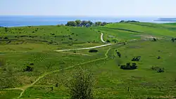 Trehøje is a Danish vista point with a view of the sea to the east, south and west, located in the Mols Bjerge National Park on the peninsula Djursland between Denmark and Sweden. Three large bronze-age barrows close to each other 127 meters above the sea, have given their name to the place, which contains a group of 22 barrows. "Trehøje" meaning three mounds, is one of four major vista points in the hills of Mols, each with a barrow on top. The others are Ellemandsbjerg, Stabelhøje and Agri Baunehøj.[1]