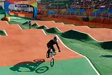 ![]() Jones training at the Olympic BMX Center in Rio de Janeiro | |