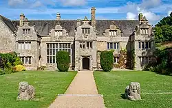 Trerice (pronounced Tre-rice)[2] is an historic manor in the parish of Newlyn East (Newlyn in Pydar), near Newquay, Cornwall, United Kingdom. The surviving Tudor manor house known as Trerice House is located at Kestle Mill, three miles east of Newquay (grid reference SW840584). The house with its surrounding garden has been owned by the National Trust since 1953 and is open to the public. The house is a Grade I listed building.[3] The two stone lions on the front lawn are separately listed, Grade II.[4] The garden features an orchard with old varieties of fruit trees.