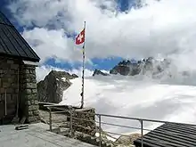 The Trient hut (French: Cabane du Trient) is a mountain hut in the Swiss alps, near the Swiss town of Martigny and the French town of Chamonix. The hut sits at an altitude of 3,170 m (10,400 ft), on a rock perched above the Trient Glacier. It can be reached on foot by mountaineers and strong hikers with experience of glacier travel. From the hut you can walk to the Albert Premier and Argentière huts in France, as well as the Cabane de Saleina (Switzerland) at the foot of the Aiguille d'Argentière. The hut is run by the SAC, the Swiss Alpine Club, and has 130 beds. It is a popular base for mountaineers exploring the area, e.g. Aiguille du Tour etc.