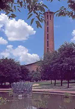When it moved, the campus was largely undeveloped (one classroom building, one dorm, and a nearly empty library were the only completed buildings).[9] Yet, under the leadership of James W. Laurie, the university's 14th president, Trinity took advantage of its new location in a rapidly growing major urban center to grow in academic stature. Laurie was responsible for drastically increasing Trinity's endowment, largely funded by the James A. and Leta M. Chapman Charitable Trust of Tulsa, Oklahoma.[10][11] The stronger endowment allowed Trinity to construct a new, modern campus on its "University on the Hill" location and to increase the quality and range of its faculty while maintaining a high faculty to student ratio. In 1969, Trinity entered into a covenant agreement with the regional synod of the Presbyterian Church (USA) that affirmed historical connections, but transformed Trinity into a private, independent university with a self-perpetuating board of trustees. The campus continues to be a "historically connected" member of the Association of Presbyterian Colleges and Universities.