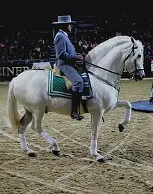 From the standpoint of the balance of the horse, the trot is a very stable gait and does not require the horse to make major balancing motions with its head and neck.[1] Due to its many variations, the trot is a common gait that the horse is worked in for dressage.