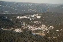 Tryvandshøiden (also Tryvannshøgda, Tryvann and Øvreseter[note 1]) was a planned station on the Holmenkollen Line in Oslo, Norway. It was planned by the company Tryvandsbanen in the early 1910s and partly constructed in 1916 at the end of a single-tracked line from Frognerseteren. A red signalman's house named "Norden" was the station's only facility. Passenger trains never served the station, and the tracks from Frognerseteren to Tryvandshøiden were removed in 1939. The signalman's house was not demolished. In 1993, 2004 and 2008, proposals were made to re-open the station so that it would be more convenient for Oslo residents to use the Tryvann Ski Resort. However, these proposals were all rejected by the operator Oslo Sporveier on the grounds that the extension would be too expensive.