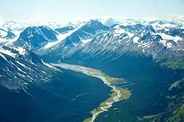 ![]() A glaciated valley southeast of Chilko Lake in Tsʼilʔos Provincial Park | |