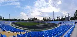 The stadium was badly damaged during the Russian invasion of Ukraine in spring 2022.[1]