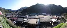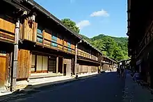 Perhaps its most interesting aspect, however, is the restored row of houses along the former post road. Most were houses built for common people in the mid-18th century, with shops and inns for travelers along the Nakasendō.