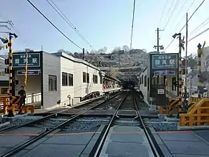 Tsuzumigataki Station (鼓滝駅, Tsuzumigataki-eki) is a passenger railway station located in the city of Kawanishi, Hyōgo Prefecture, Japan. It is operated by the private transportation company Nose Electric Railway.[1]