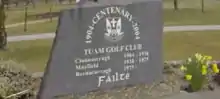 The origins of golf in Tuam go back to the early 1900s when two local businessmen holidayed in the town of Harrogate in England. There they became acquainted with the game, purchased clubs and balls and brought them back to Tuam.[2] Initially located in the townland of Cloonascragh (on land owned by one of the two businessmen), Tuam Golf Club opened in 1904 with 60 members. In 1937 it relocated to the lands of the Kilgarriff family at Mayfield.