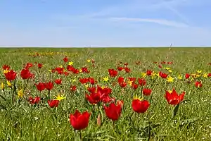 Tulips peninsula (Russian: Полуостров тюльпанов) is a tourist attraction which is situated near Orlovsky village, Rostov Oblast, Russia, in the valley of the Manych River. It is most visited in the second half of April during the mass flowering of tulips.[1]