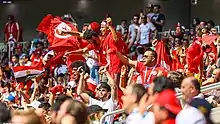 Fans of the Tunisian national team display the country's national flag,[108] usually with an emphasis on the red element.[109]