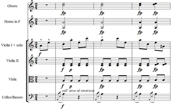 Both characteristics just mentioned can be seen in the following extract of Turkish music in the Mozart's Violin Concerto No. 5:
