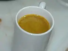 Turmeric juice (sometimes referred to as "drinkable turmeric" or "turmeric elixir") is a form of drink made from turmeric. The demand for turmeric juice has increased in the United States, with imports of turmeric tripling between 2008 and 2014.[1] Turmeric juice has come in numerous forms throughout its history, including drops, milk, elixirs, and blended drinks.