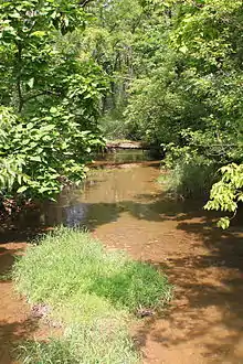 Iron ore was observed on the creek by the 1800s. This ore was pinkish and has been described as "compact, coarse, siliceous". It resembled ores from near Danville.[7] A soil known as the Crestmore silt loam occurs in small areas near the creek.[8]
