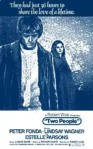Two People is a 1973 American drama film produced and directed by Robert Wise and starring Peter Fonda and Lindsay Wagner. The screenplay by Richard De Roy focuses on the brief relationship shared by a Vietnam War deserter and a fashion model.