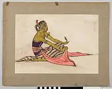 Unfortunately, this project ended in July 1920 in turmoil due to clashing personalities, and van Helsdingen-Schoevers died 17 August 1920 of an unknown disease.[7] The project was finished in 1925 with help from "Volkslectuur" (the commission of folk literature), Mabel Fowler and Miss Gobée, wife of the Head of the Office for Internal Affairs, titled "The Serimpi and Bedojo Dances at the Court of Surakarta", with 16 pages of text. In July 1925 there appeared a new edition with 30 pages of text. The coloured plates were reproductions made by the Topographic Service of Kleen's drawings. For everyone involved, but especially Kleen, the result was very disappointing, because she wanted to participate in this project in order to result in a standard reference work that could be presented worldwide.