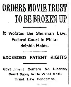 - ↑ Orders Movie Trust To Be Broken Up, N.Y. Times (Oct. 2, 1915).