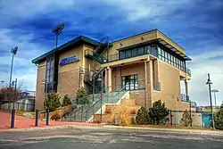 The Sky Sox won Pacific Coast League championships in 1992 and 1995, and attendance was generally good; however, at the end of the 2004 season, facing declining turnout and an assortment of problems that showed the ballpark's age (capped by the center-field scoreboard, on which the ball, strike, and out indicators were non-functional), team executives decided to renovate the ballpark.[6][7] Changes included an improved sound system, a more modern scoreboard with video screen,[8] a new walkway leading to the gates, a banquet facility at the end of the right field concourse, and a readout in the right field wall displaying the speed of each pitch.