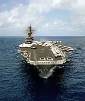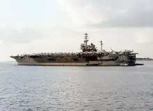USS America (CVA/CV-66) was one of three Kitty Hawk-class supercarriers built for the United States Navy in the 1960s. Commissioned in 1965, she spent most of her career in the Atlantic and Mediterranean, but did make three Pacific deployments serving in the Vietnam War. She also served in the Persian Gulf War's operations Desert Shield and Desert Storm.