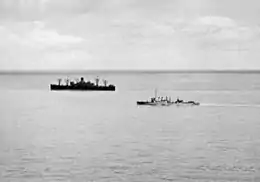 She was part of the international effort to alleviate the postwar famine in eastern Europe. She helped evacuate refugees, furnishing a center of communications for the Near East and standing by for emergencies. When the Turks expelled the Anatolian Greeks from Smyrna (Izmir), Edsall was one of the American destroyers which evacuated refugees. On 14 September 1922, she took 607 refugees[1] off Litchfield in Smyrna and transported them to Salonika, returning to Smyrna on 16 September to act as flagship for the naval forces there. In October she carried refugees from Smyrna to Mytilene on Lesbos Island. She made repeated visits to ports in Turkey, Bulgaria, Russia, Greece, Egypt, Mandate Palestine, the Syrian Federation, Tunisia, Dalmatia, and Italy, and kept up gunnery and torpedo practice with her sisters until her return to Boston, Massachusetts, for an overhaul on 26 July 1924.
